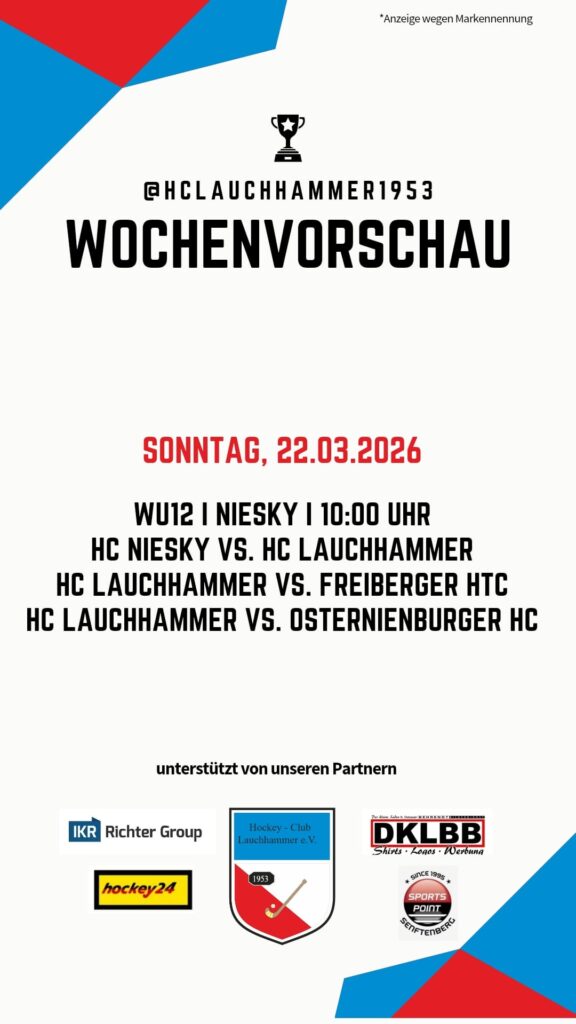 Hier kommt die letzte Wochenvorschau zur Hallensaison 2025/26. Wir danken allen Trainern, Betreuern, Schiedsrichtern und Freunden des Hockeysportes in Lauchhammer für Eure tatkräftige Unterstützung und Euren Einsatz für unseren Verein!