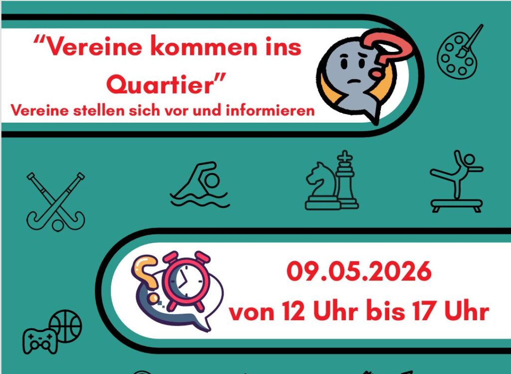 Am Samstag dem 09.05.2026 von 12 – 17 Uhr nehmen wir ebenfalls an Veranstaltung „Vereine kommen ins Quartier“ auf dem Dietrich-Heßmer-Platz teil. Dort möchten wir uns allen Interessierten vorstellen und die Möglichkeit bieten sich selbst einmal an dem Hockeyschläger auszuprobieren.