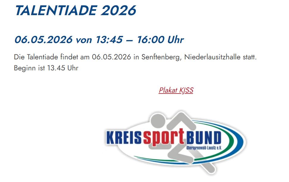 Gemeinsam mit dem KSB – OSL werden wir natürlich auch in diesem Jahr wieder an der Talentiade des LSB Brandenburg teilnehmen.